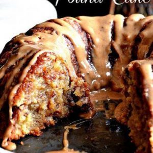 - Pour the warm caramel glaze over the cooled cake, letting it drip down the sides. Slice and serve.