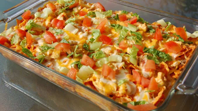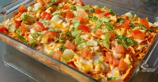 INGREDIENTS 1 (14.5 oz.) package nacho cheese doritos chips, lightly crushed 2 1/2 cups cooked chicken, shredded 1 (13.25 oz.) can…