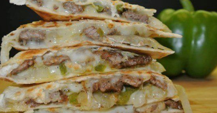 Philly Cheesesteak Quesadillas are filled with beef and melted cheese in a soft tortilla that is toasted on a skillet…