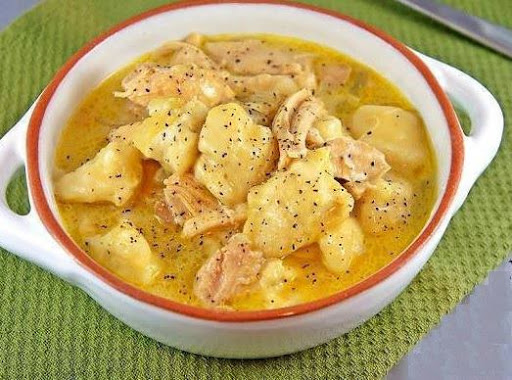 Remove chicken and shred. Add the chicken back in with some crumbled bacon and the peas, stir together.