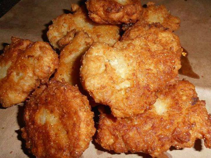 Fry for about a minute per side until golden brown and place on a paper sack or paper towel to drain.