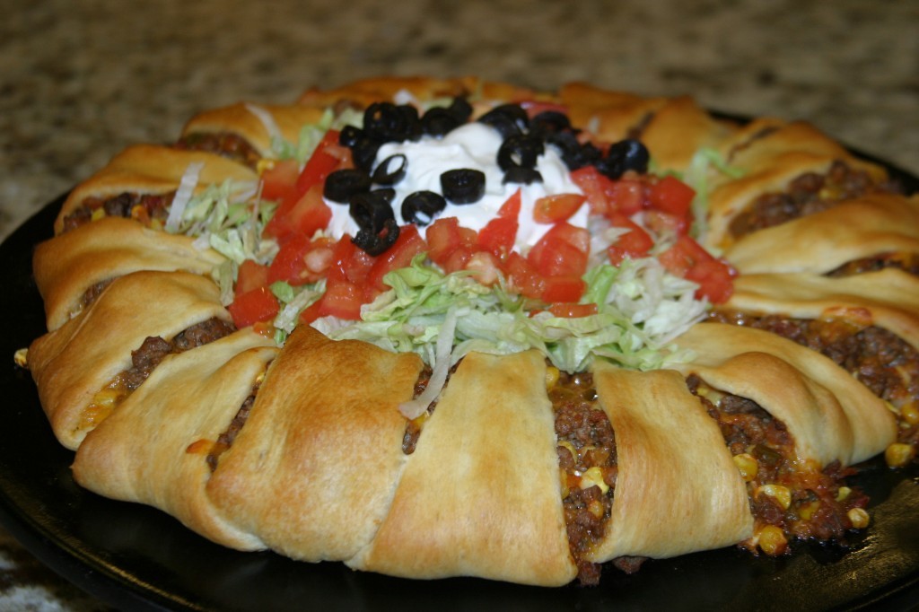 Lay beef in a circle inside of the laid out crescent rolls