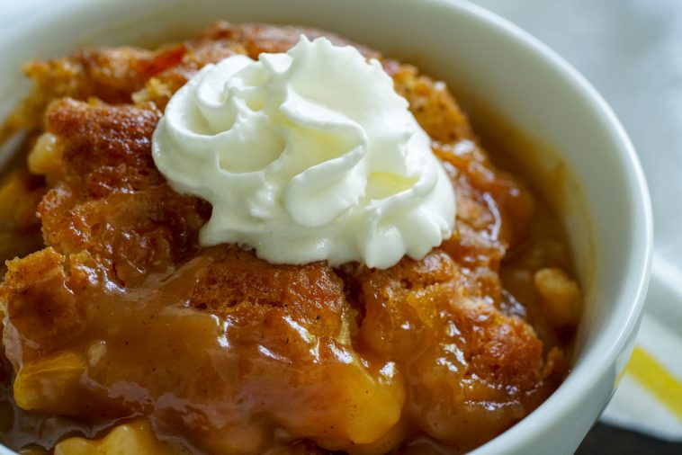 Whisk in milk and vanilla extract until smooth, then fold in diced peaches.