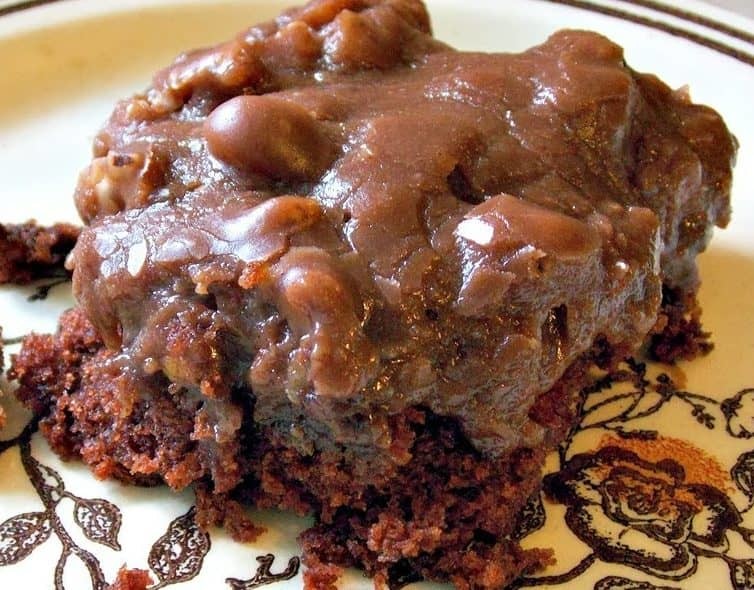 In a saucepan, combine the butter, water and cocoa over med. heat until the butter melts. Don’t let it cook too long.