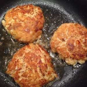 Heat unsalted butter (or oil) in a large skillet over medium heat. Add the crab cakes and cook until golden brown, about 3 to 4 minutes per side, turning carefully.